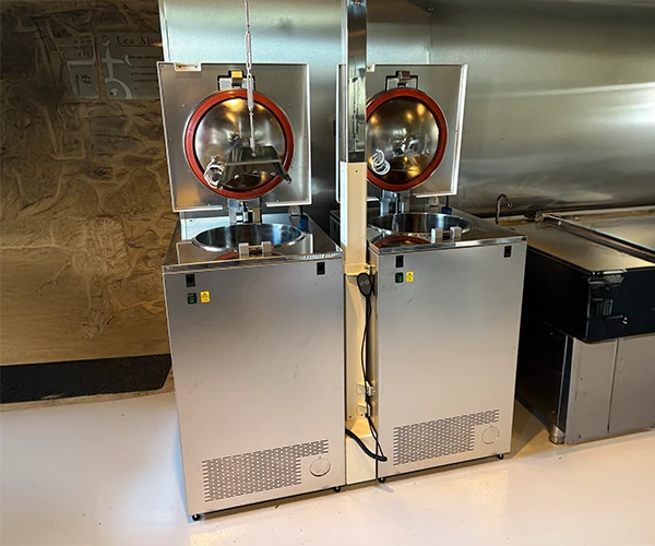 Nos autoclaves sont conformes aux exigences des services vétérinaires, adaptés à vos besoins, fiables et évolutifs. Cet appareil vous permet de stériliser en toute confiance vos produits en respectant leurs qualités organoleptiques (saveur, texture …). Vous pouvez utiliser cet équipement pour tous vos emballages: boites métalliques, bocaux, verrines, barquettes, bols, sachets, poches, etc. Un autoclave professionnel permet d’automatiser les cycles de stérilisation, de régler la température avec un calculateur, de controler la pression et le refroidissement sous pression.